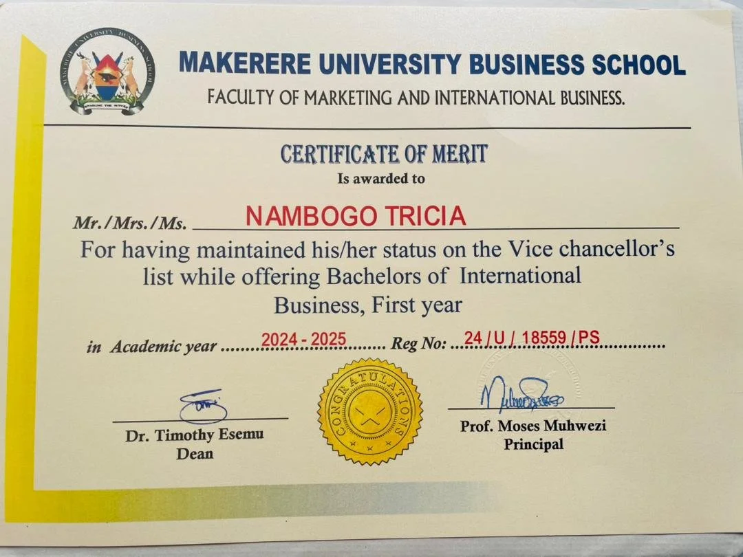 When Tricia joined Makerere University Business School (MUBS) in 2024 on our University Scholarship Program to pursue a Bachelor's in International Business, she arrived with an agenda that went far beyond mere graduation. She went to set a standard. From her very first semester, she set a high bar. Her name has become a staple on the prestigious Vice Chancellor’s List, an honor reserved exclusively for those who achieve and maintain First Class cumulative grade point Average (CGPA).